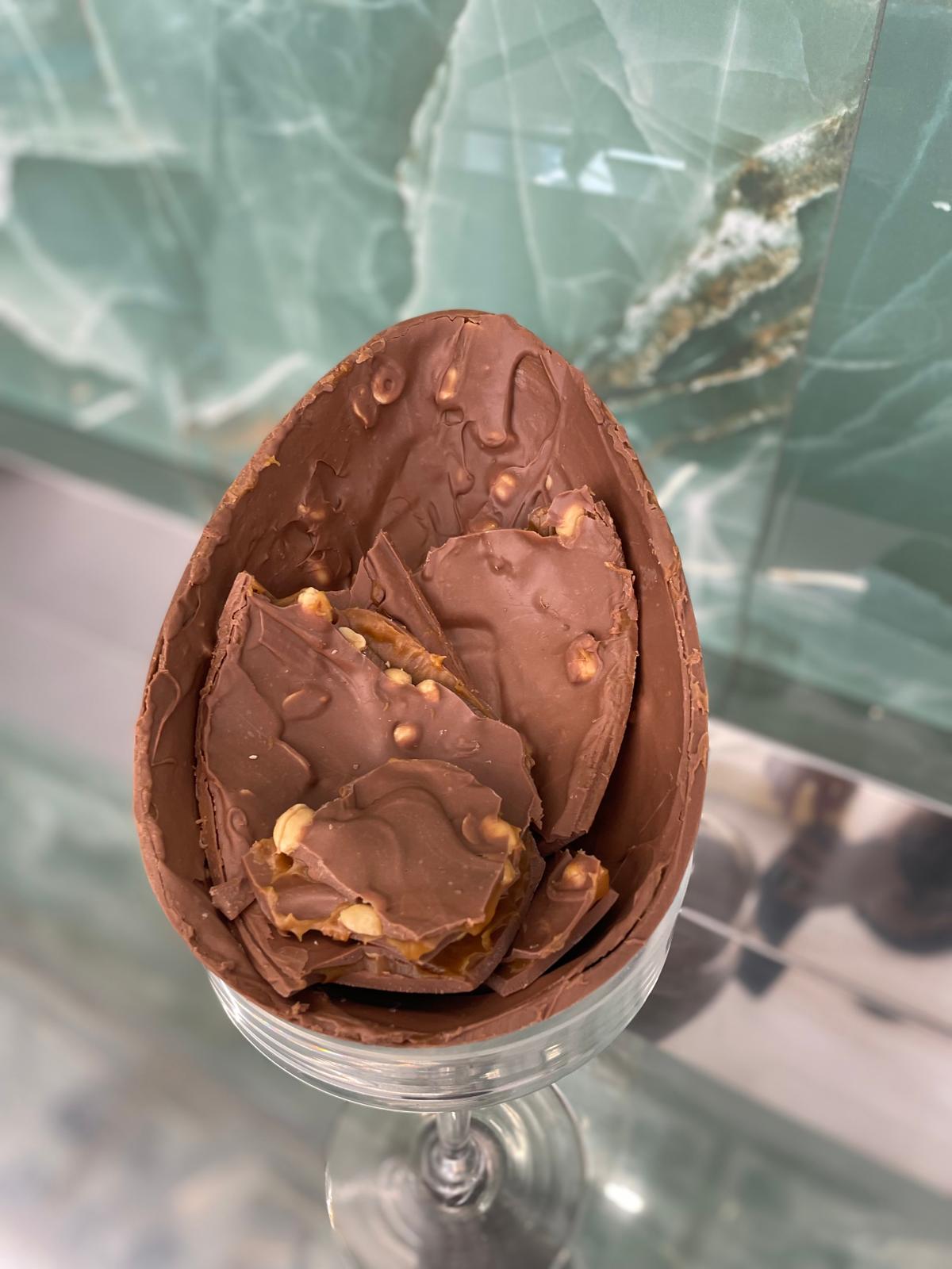 Un Uovo di Pasqua dal gusto sorprendente! Il nostro Uovo di Cioccolato al Latte con Caramello Salato e Arachidi unisce la dolcezza del cioccolato al latte Valrhona alla nota irresistibile del caramello salato, con il tocco croccante delle arachidi tostate. Ogni morso è un’esperienza di puro piacere, perfetto per chi ama i contrasti di sapore. Regalalo o concediti un momento di autentica golosità!